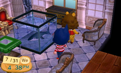 I find that I am, for the most part, walking around with an abundance of money even after spending a couple hundred thousand bells on public works projects or upgrades to my house, so I'm trying to get the Nookling's store and the Able Sisters shop upgraded, but this is going at a snail's pace. I especially need Nookling's to get upgraded to T&T's so that I can get a slingshot already, and possibly more fortune cookies. I'm tired of going there and seeing barely anything for sale. As for the Able Sisters, it seems that Sable as taken Isabelle's place in being the flirt, which was a bit unexpected for me seeing as how she starts off all like "..." when I started talking to her. I knew she gets more friendly and all, but I didn't know that Mable would start telling me about how Sable would talk endlessly about me and how she wanted more employees to help out so that she could spend time with me... So strange how all the female animals are all over me in this game. I guess that's the perk of being the mayor?